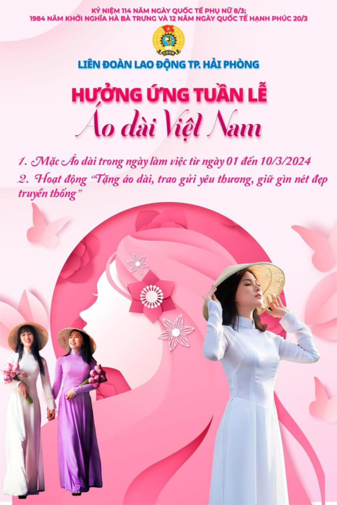 phụ nữ 8/3, 1984 năm khởi nghĩa Hai Bà Trưng do LĐLĐ thành phố và LĐLĐ quận Hồng Bàng phát động, đồng thời góp phần lan tỏa việc bảo tồn và phát huy những giá trị tốt đẹp của áo dài truyền thống Việt Nam, nữ công đoàn viên nhà trường đã tích cực tham gia và hưởng ứng mặc áo dài trong các ngày làm việc.